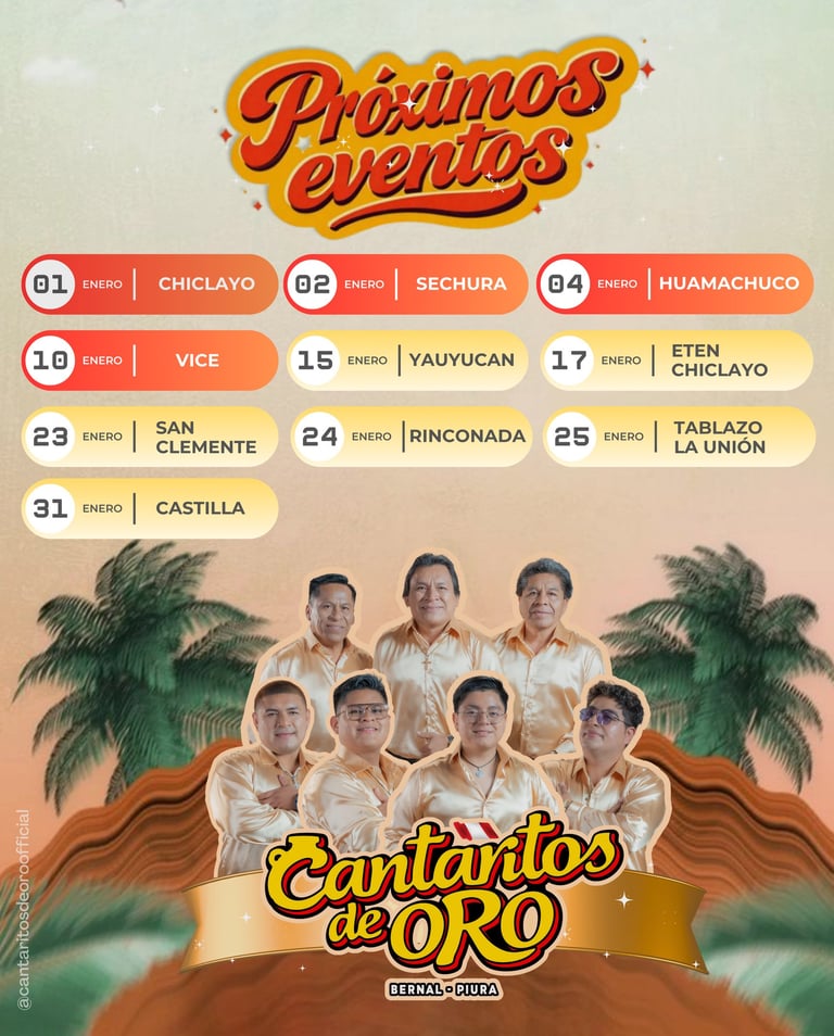 Bienvenidos a la pagina oficial de la Organización Musical Cantaritos de Oro S.A.C. Fundada en 1978 en Bernal, Piura, por Eddy Ayala Pingo y Anthony Ayala Pingo.